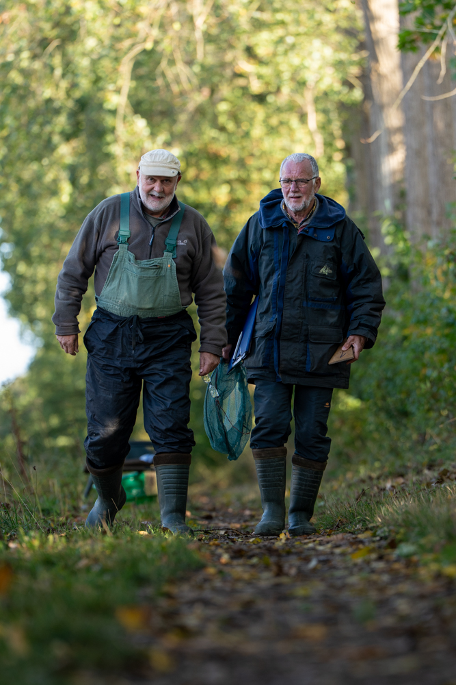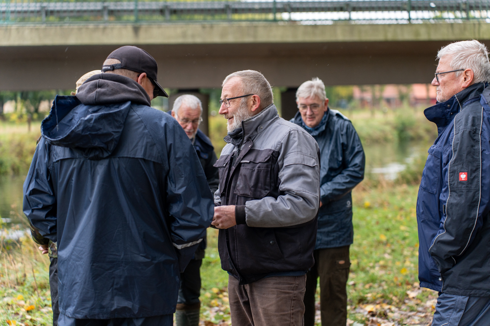 Am 4. Oktober 2025 fand das traditionelle Abfischen an der Ems statt – diesmal mit einer kurzfristigen Planänderung. Eigentlich sollte, wie gewohnt, das Gewässerstück an der Freibadbrücke in Warendorf den Rahmen bilden, doch eine dort eingerichtete Baustelle machte das Fischen an dieser Stelle unmöglich. Kurzerhand wurde umdisponiert: Vom Treffpunkt auf dem Parkplatz aus ging es gegen 13 Uhr in Kolonne nur wenige hundert Meter flussaufwärts, an die Ems auf Höhe der B 475, wo Erich bereits die Plätze abgesteckt hatte.