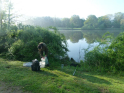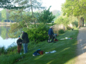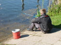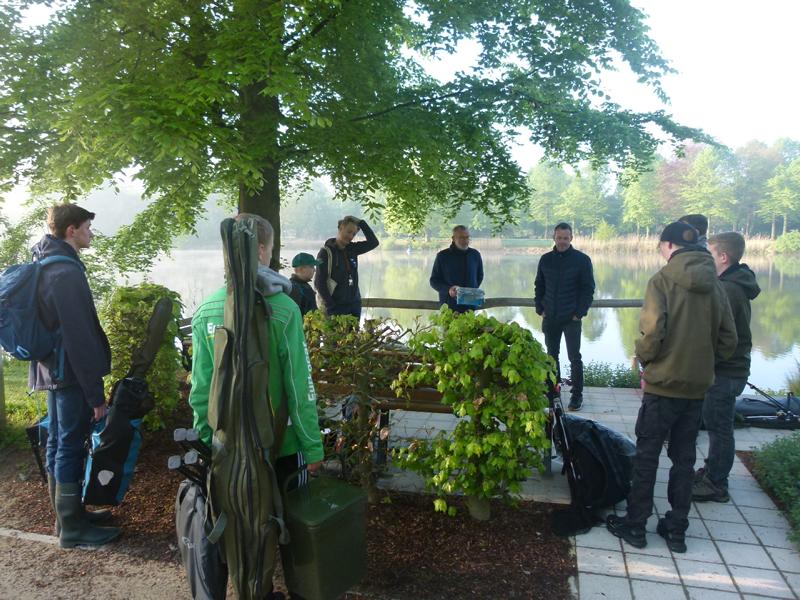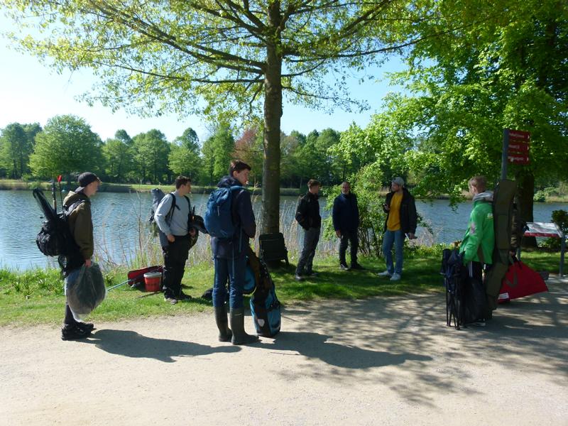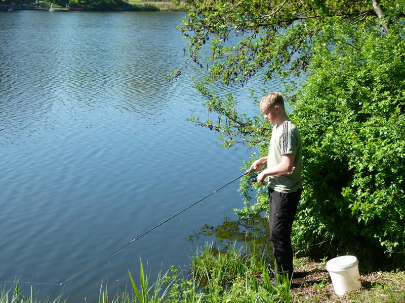 So langsam tauchten die ersten Teilnehmer auf. Mein Versuch gespendetes Angelmaterial loszuwerden, endete mit der Frage, ob man die Sachen vom letzten Mal wieder zurückgeben könnte. Tatsächlich bin ich dann aber doch noch einen Angelkoffer losgeworden. Um kurz nach acht ging es für acht Jungangler an die Angelstellen. Nachdem einige Montagen von Willi und Jens überarbeitet wurden, sollten eigentlich so langsam die ersten Fische beißen. Eigentlich schien an diesem Tag aber nicht zu funktionieren. Egal, was probiert wurde, die Posen wollten einfach nicht untergehen. Johann versuchte sogar mit einem gezupften Wurm einen Barsch zu überreden. Barsche sind bei uns in der Jugendgruppe nämlich auch in der Wertung. Für einen Moment der Spannung sorgte dann allerdings ein anderer Fisch, denn ein Hecht um die 70 cm packte sich den Wurm. Doch der Drill war schnell vorbei. Mit einem Schwall verabschiedete sich der Räuber wieder in die Tiefe. So konnte bis zum Schluss leider kein einziger Fisch gefangen werden. Für uns bleibt nur die Hoffnung, dass die Jugend wenigstens die Natur und das schöne Wetter genießen konnte. Und beim nächsten Mal beißt bestimmt was!