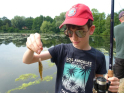 Da viele Stellen, die wir sonst beim Schnupperangeln nutzen, mittlerweile komplett vom Kraut eingenommen sind haben wir uns kurzerhand entschieden, an die Staumauer zu gehen. Wir waren uns einig, wenn irgendwo bei dieser Hitze Fische sind, dann in der Strömung. Also gab es vor dem Fischen einen kleinen Spaziergang. Obwohl die Fische nicht wirklich in Beißlaune waren, konnten doch einige gefangen werden. Selbst die Betreuer haben mitgeangelt und waren erfolgreich. Aber mit Abstand, die meisten, nämlich 13 Fische, gab es für den Jüngsten unter uns. Darunter Gründlinge, Barsche und Ukeleien. Wie schnell doch die Zeit vergeht, wenn ab und zu etwas beißt. Als kleine Abkühlung gab es sogar noch ein Eis für alle. An dieser Stelle nochmal vielen Dank an Karl!