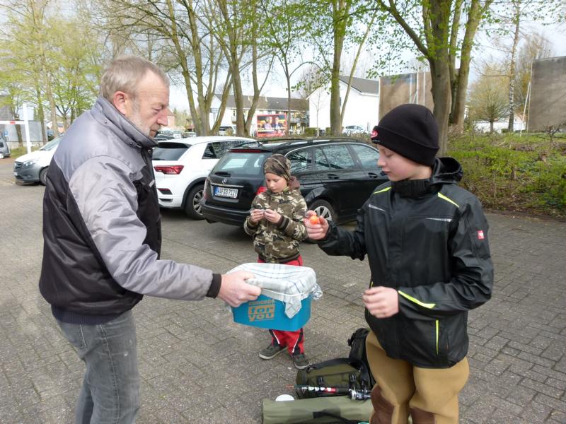 Wer sich jetzt fragt, warum ich die ganze Zeit über das tolle Aprilwetter schreibe und nicht über die spannende Zeit am Wasser oder die vielen Fische, die gefangen wurden, den muss ich leider enttäuschen. Das Angeln war aufgrund der äußeren Umstände eher anstrengend und es wurde leider kein Fisch gefangen. Lediglich eine alte Plastiktüte. Auf die Frage "Warum angeln wir eigentlich immer da, wo es keine Fische gibt?" hatte ich irgendwie auch keine gute Antwort parat. Aber wir geloben Besserung und versuchen in Zukunft bessere Angelstellen zu finden. Trotzdem haben wir uns gefreut, dass alle acht Jungangler bis zum Schluss durchgehalten haben. Als kleine Belohnung gab es, neben der Erfahrung, dass es im Frühjahr schwierig sein kann einen Fisch zu fangen, eine Verlosung von gespendeten Angelsachen. So konnten die Jungs wieder etwas lächeln.