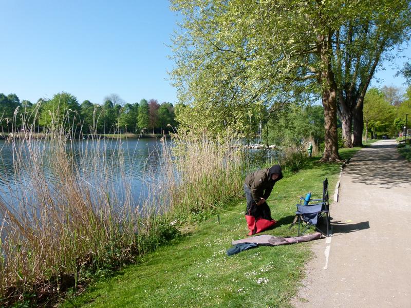 Es war ein kühler Morgen. Sechs Grad zeigte das Thermometer, als ich am Emssee ankam. Das Gras war noch mit Morgentau bedeckt und die Sonne schien bereits durch die grünen Bäume. Wirklich unglaublich, wie schnell der Frühling Einzug gehalten hat. Es ist keine zwei Wochen her, da waren die Bäume noch kahl, jetzt erstrahlen sie in einem hellen Grün.