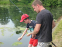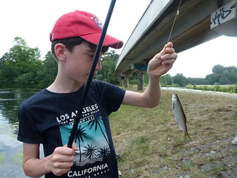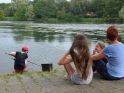 Da viele Stellen, die wir sonst beim Schnupperangeln nutzen, mittlerweile komplett vom Kraut eingenommen sind haben wir uns kurzerhand entschieden, an die Staumauer zu gehen. Wir waren uns einig, wenn irgendwo bei dieser Hitze Fische sind, dann in der Strömung. Also gab es vor dem Fischen einen kleinen Spaziergang. Obwohl die Fische nicht wirklich in Beißlaune waren, konnten doch einige gefangen werden. Selbst die Betreuer haben mitgeangelt und waren erfolgreich. Aber mit Abstand, die meisten, nämlich 13 Fische, gab es für den Jüngsten unter uns. Darunter Gründlinge, Barsche und Ukeleien. Wie schnell doch die Zeit vergeht, wenn ab und zu etwas beißt. Als kleine Abkühlung gab es sogar noch ein Eis für alle. An dieser Stelle nochmal vielen Dank an Karl!